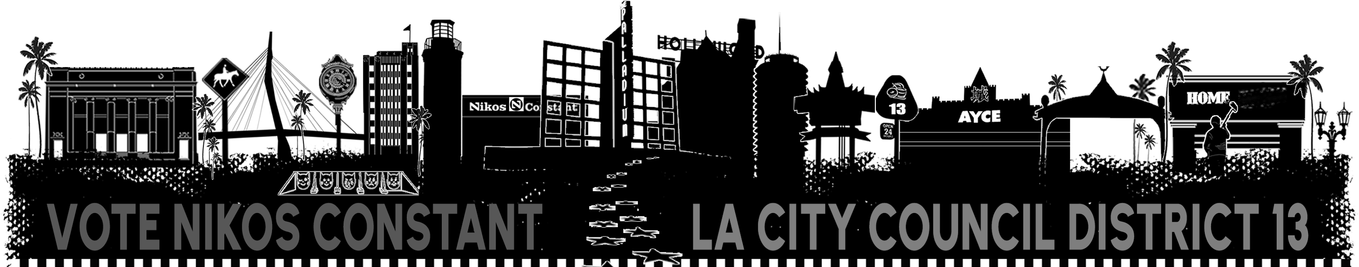 I’ve lived in Council District 13 since graduating from UCLA in 1993. First, I was at Sunset and Gardner, above Toi and Freedom Guitar, when the old Sunset Grill was still a shack and streetwalkers ran the night. I’d been going to punk rock shows and clubs all around the district since high school. I was one of those corndogs that the Minutemen sang about. I worked for Larry Flynt in Beverly Hills during the day, and shot skateboarders in the alleyways behind Sunset at night. I got fat eating at all the great food spots, and started a business with an office on Sunset.
